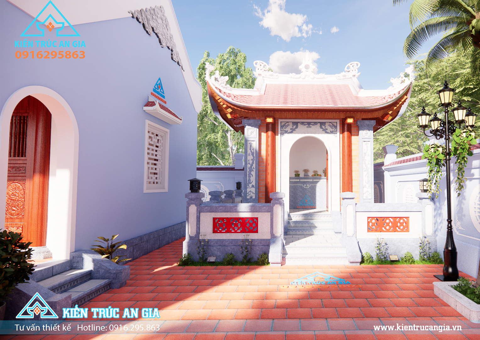 Với những đơn vị đang có ý định thiết kế xây dựng miếu, thi công cải tạo miếu thì hãy liên hệ với Kiến Trúc An Gia, chúng tôi với đội ngũ KTS giàu kinh nghiệm, am hiểu về phong thủy thiết kê và xây dựng đình chùa miếu, sẽ mang đến cho qúy khách công trình thiết kế xây dựng chùa miếu đẹp và hợp phong thủy nhất. Quý khách có thể tham khảo mẫu thiết kế thi công miếu thờ nhỏ do Kiến trúc An Gia thiết kế và thi công xây dựng :