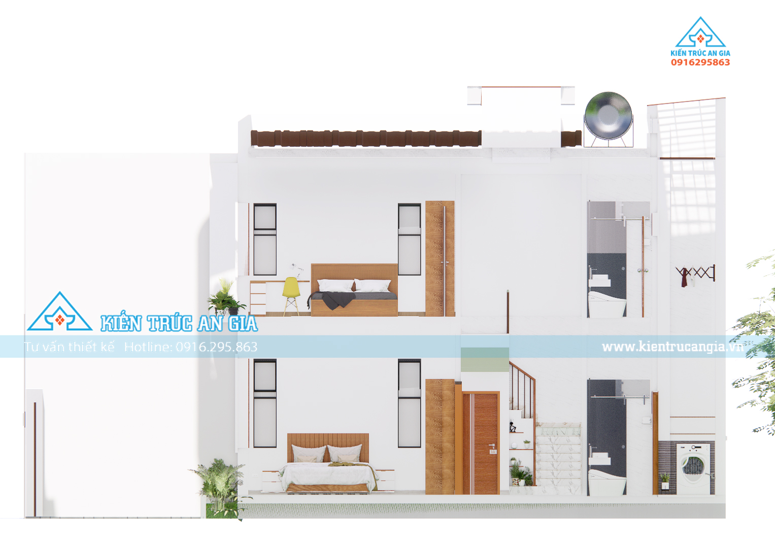 Nhà 2 tầng có lẽ được xem là lựa chọn “an toàn” nhất đối với nhiều gia đình hiện nay khi chúng đáp ứng đủ cả về chi phí cũng như không gian sống. Tuy nhiên, nhu cầu xây nhà 2 tầng càng lớn thì các tiêu chuẩn về tính thẩm mỹ cũng theo đó mà tăng cao. Và để đáp ứng các tiêu chí được đưa ra từ khách hàng, hiện có rất nhiều kiểu nhà 2 tầng đẹp với thiết kế độc đáo, bắt mắt. Dưới đây là mẫu: "Thiết kế nhà 2 tầng ” do Kiến trúc An Gia thiết kế.