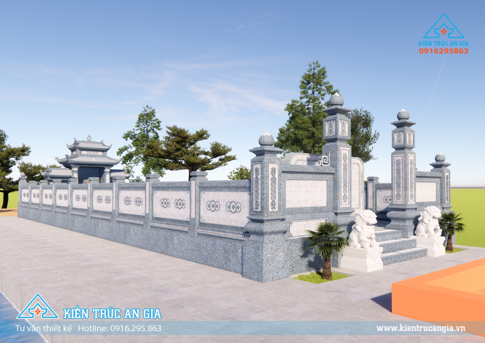 KHU LĂNG MỘ ĐÁ KÍCH THƯỚC KHUÔN VIÊN 20 M